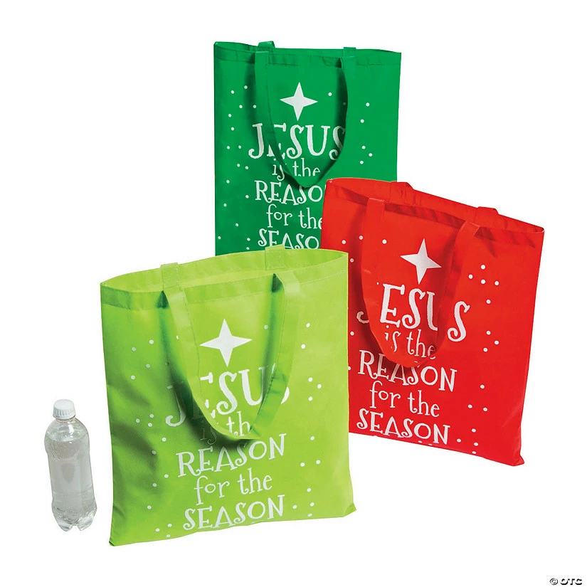 Jesus is the reason for the season! Tired of wrapping paper and flimsy paper gift bags for your Christmas gifts? Spread his love with these reusable and sturdy tote bags instead! Great for Christmas and holiday party favor bags, too. Nonwoven polypropylene. 15″ x 17″ with 11 1/2 handles. © OTC