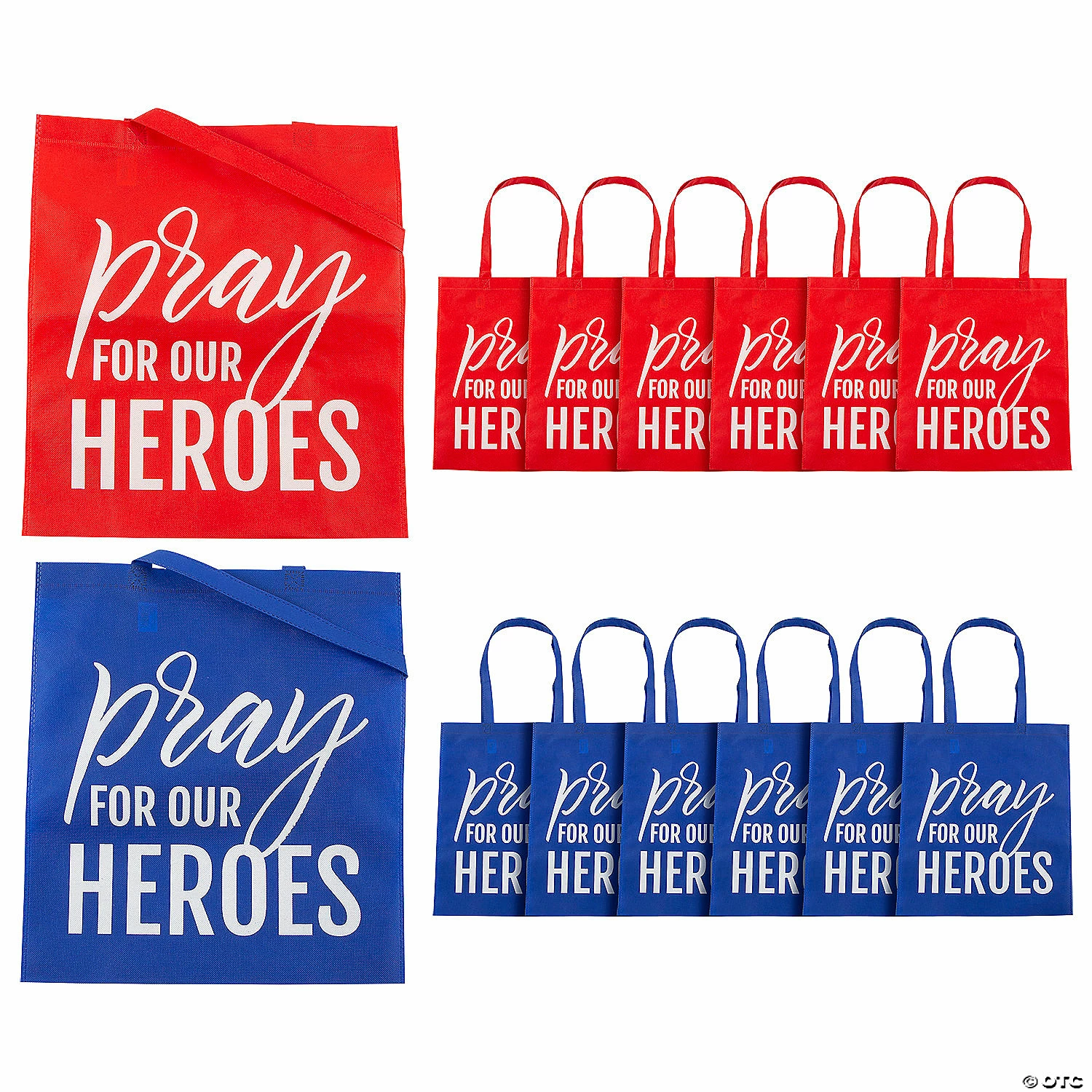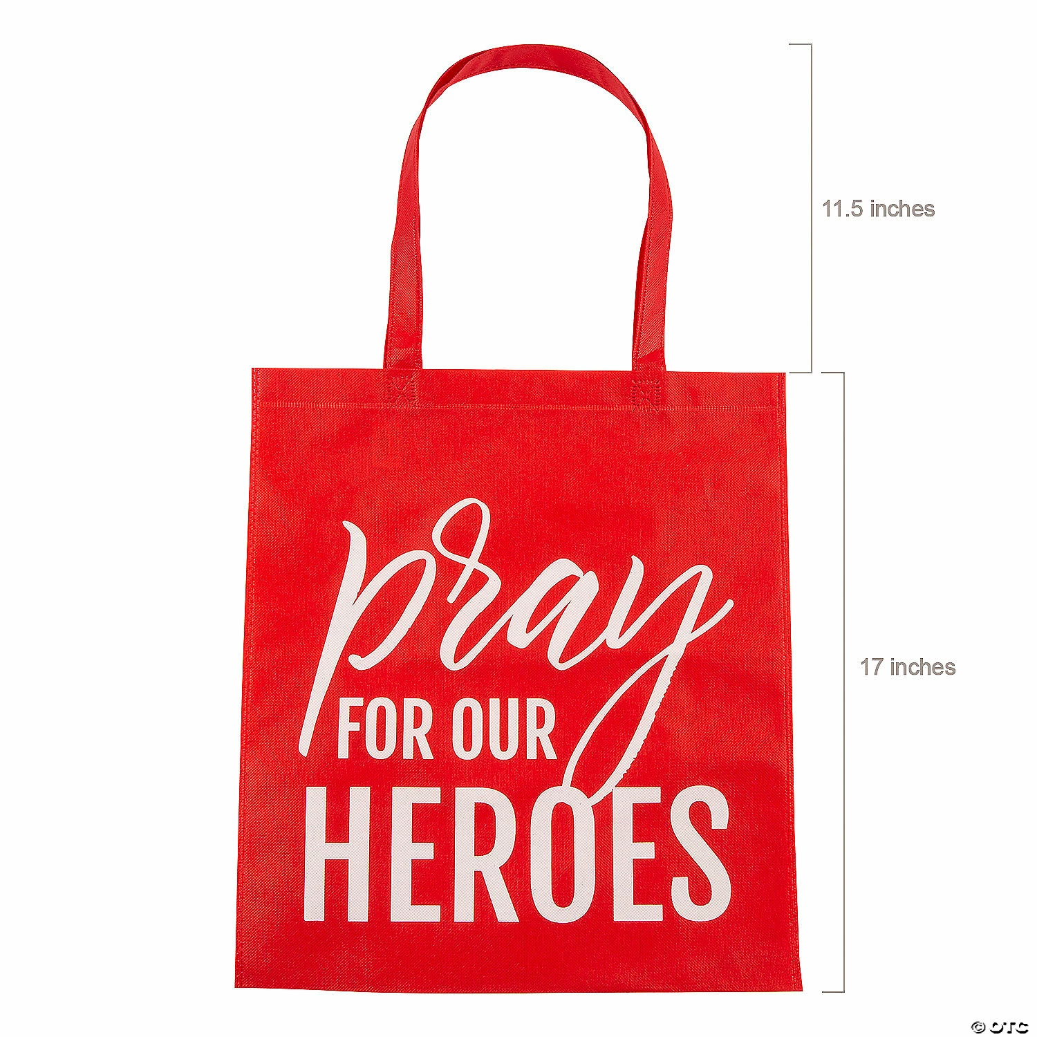 15″ x 17″ Large Pray for Our Heroes Nonwoven Tote Bags – 12 Pc.