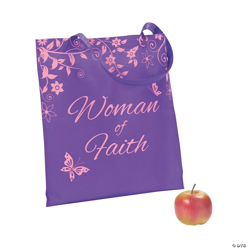 15″ x 17″ Large Woman of Faith Nonwoven Tote Bags – 12 Pc.