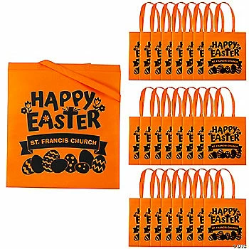 15″ x 17″ Personalized Orange Church Egg Hunt Large Nonwoven Tote Bags – 24 Pc.