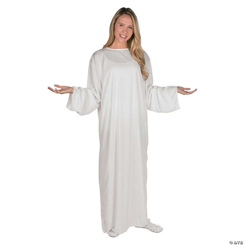 Gown yourself in gorgeous white. You’re such an angel! Fool friends and family with this pure white frock! Perfect for a costume party or holiday celebration, this vestment will look heavenly on you! Don’t forget a tinsel halo! Includes polyester robe. One size fits most. Imported.