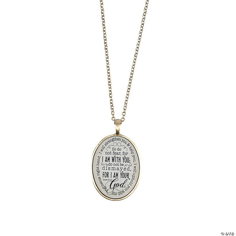This heartfelt pendant necklace makes a great Easter gift, Christmas gift or birthday gift. Featuring a beautiful antique look, the pendant is pre-printed with Isaiah 41:10, “I will strengthen you & help you; I will uphold you with my righteous right hand. So do not fear, for I am with you; do not be dismayed for I am your God.” Metal 24″ © OTC