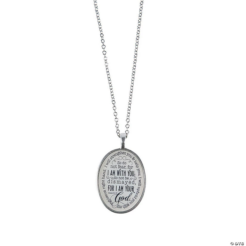 Are you looking for an inspirational gift for a loved one? This faith-filled antique looking necklace features an inspirational Bible quote, Isaiah 41:10. Give it to a friend or loved one to provide strength, whether it’s for a birthday gift, Christmas gift or just a present to let them know you’re thinking of them. Metal. 24″ © OTC