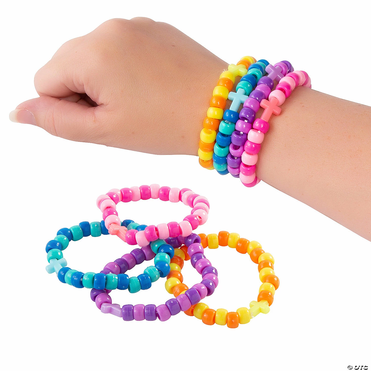 Youngsters can show off some colorful style while also making a faith statement thanks to these cross bracelets! Each bracelet stretches to accommodate most child wrist sizes and comes in a variety of bright colors. These are perfect for handing out to students at Sunday School or kids attending a VBS week at church. Plastic. (2 dozen per unit) 2 1/2″ © OTC
