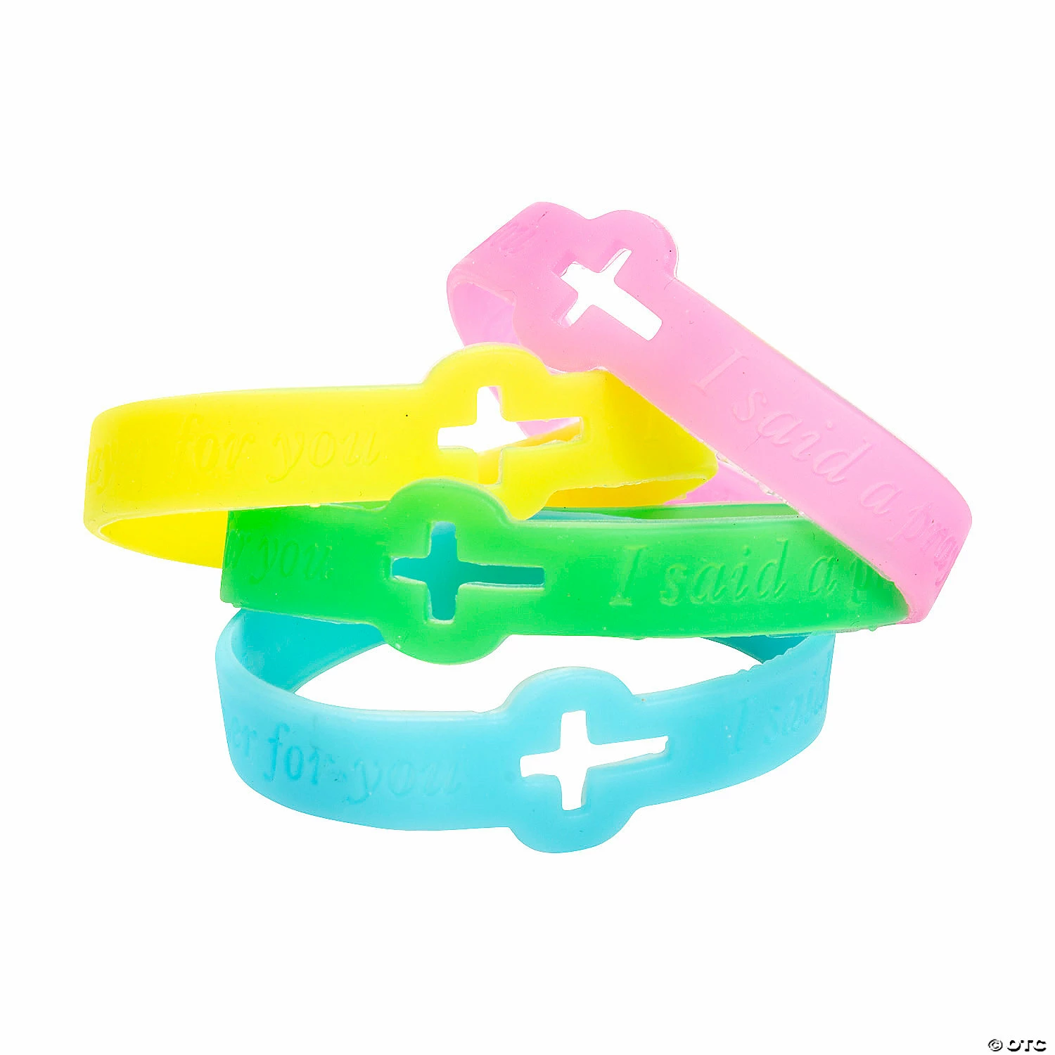 Cutout Cross Glow-in-the-Dark Faith Rubber Bracelets – 12 Pc.