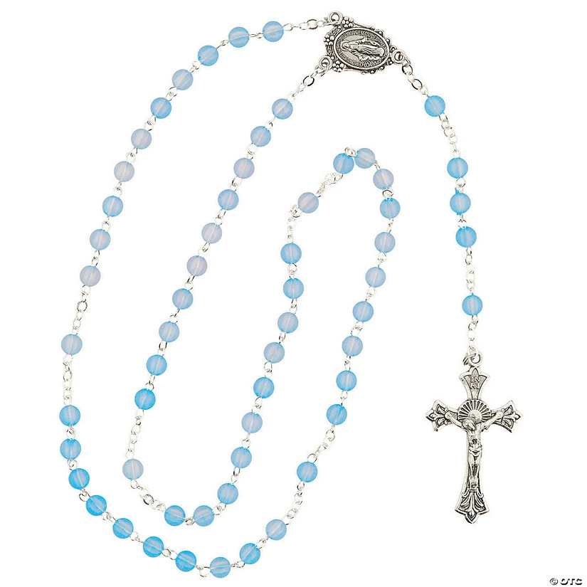 This blue zircon-beaded rosary makes a fantastic baptism or First Communion gift! A perfect religious gift for a December birthday, this high-quality rosary will be a treasured keepsake for years to come. Check out more birthstone gifts and religious gifts elsewhere on this website. Metal. 18 3/4″