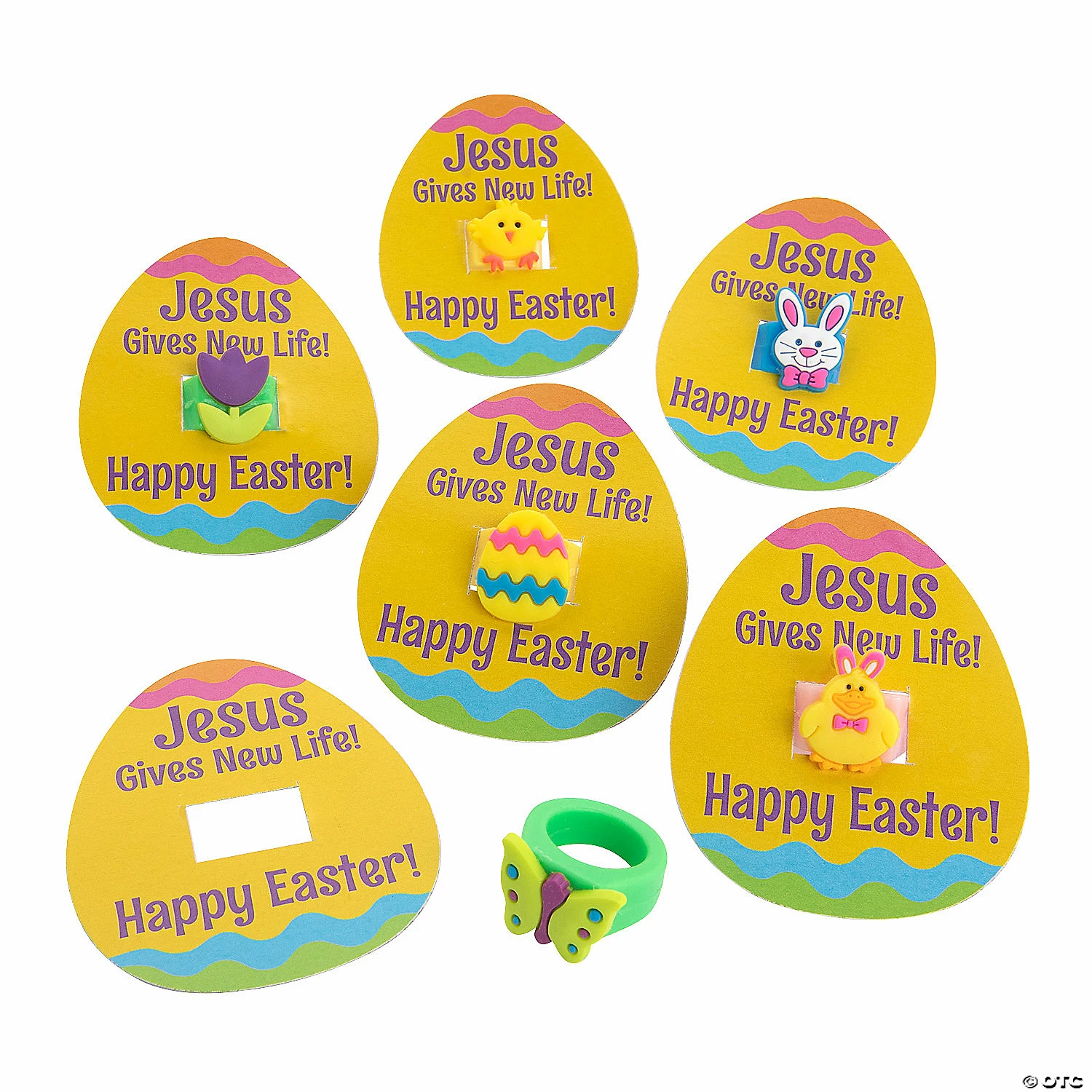 Sunday School teachers rejoice! This kit helps you easily create Easter handouts that kids will love! Featuring cute and colorful Easter-themed rings along with egg-shaped cards with faith messaging and a To/From space, these Easter handouts will delight Sunday School kids and help them remember that the holiday is about more than baskets and candy! (48 pcs. per unit) Assortment may vary. Simple assembly required.Includes: • 24 Rubber Easter Rings (3 1/2″ circ. with 3/4″ charm.)• 24 Cardstock Egg-Shaped Cards (2 1/2″ x 3″)