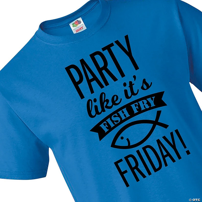 During lent, it’s fish fry season! If you and your family like to make a big celebration out of your Lenten Fridays, this fish fry T-shirt is meant for you! Get the entire gang together to sport these tees as you make your way into the church ready for that deep-fried goodness! © OTC • Brand: Fruit of the Loom• Short Sleeve• High-density fabric• 50% cotton and 50% polyester• Tear away label• Double needle hemmed sleeves and bottom• Need more? With our tees, we’ve got your back (and front)! To order in bulk for any size group, just call 1-877-513-0384. Or, give us a ring if you’d like to easily customize any of our pre-printed shirts with our free design service.