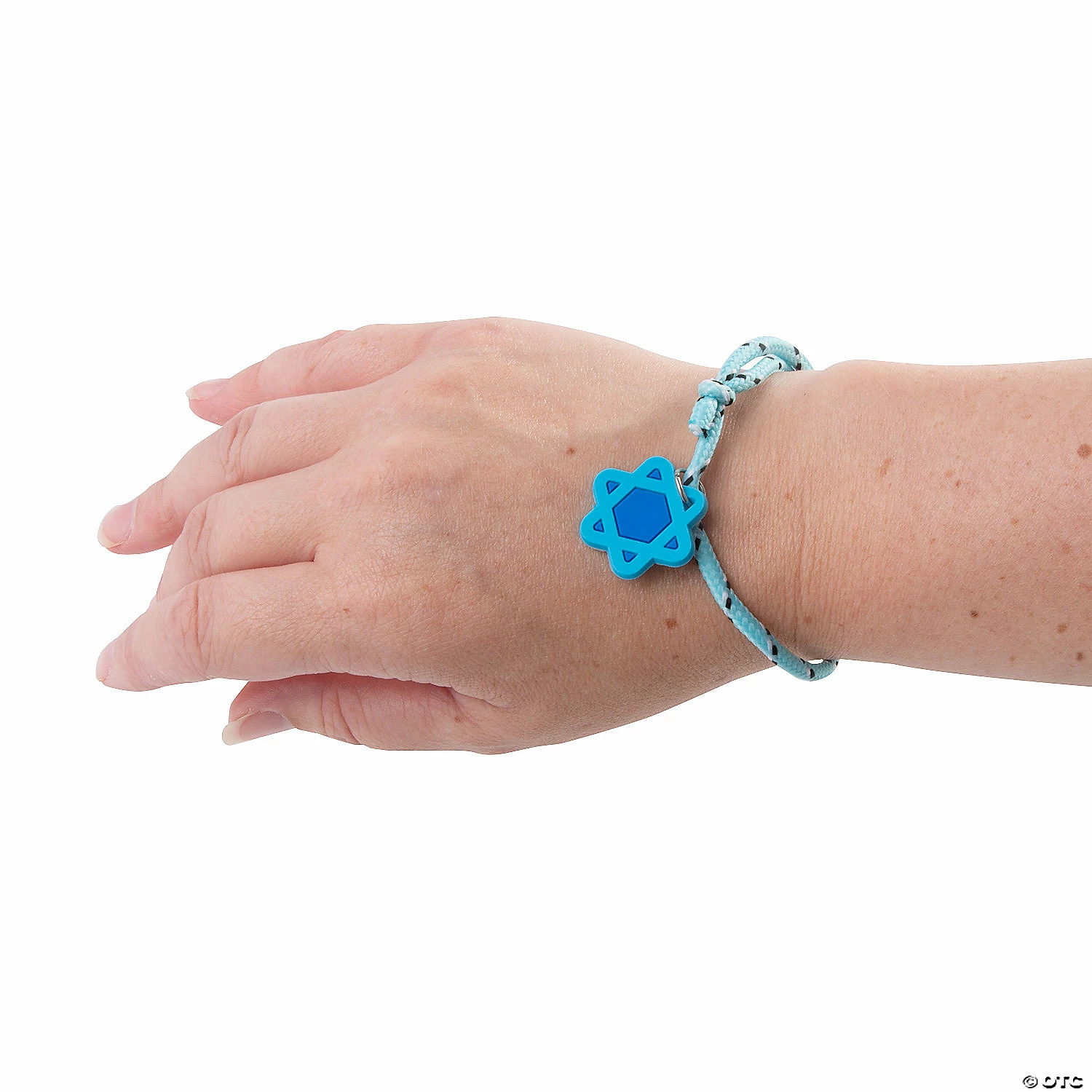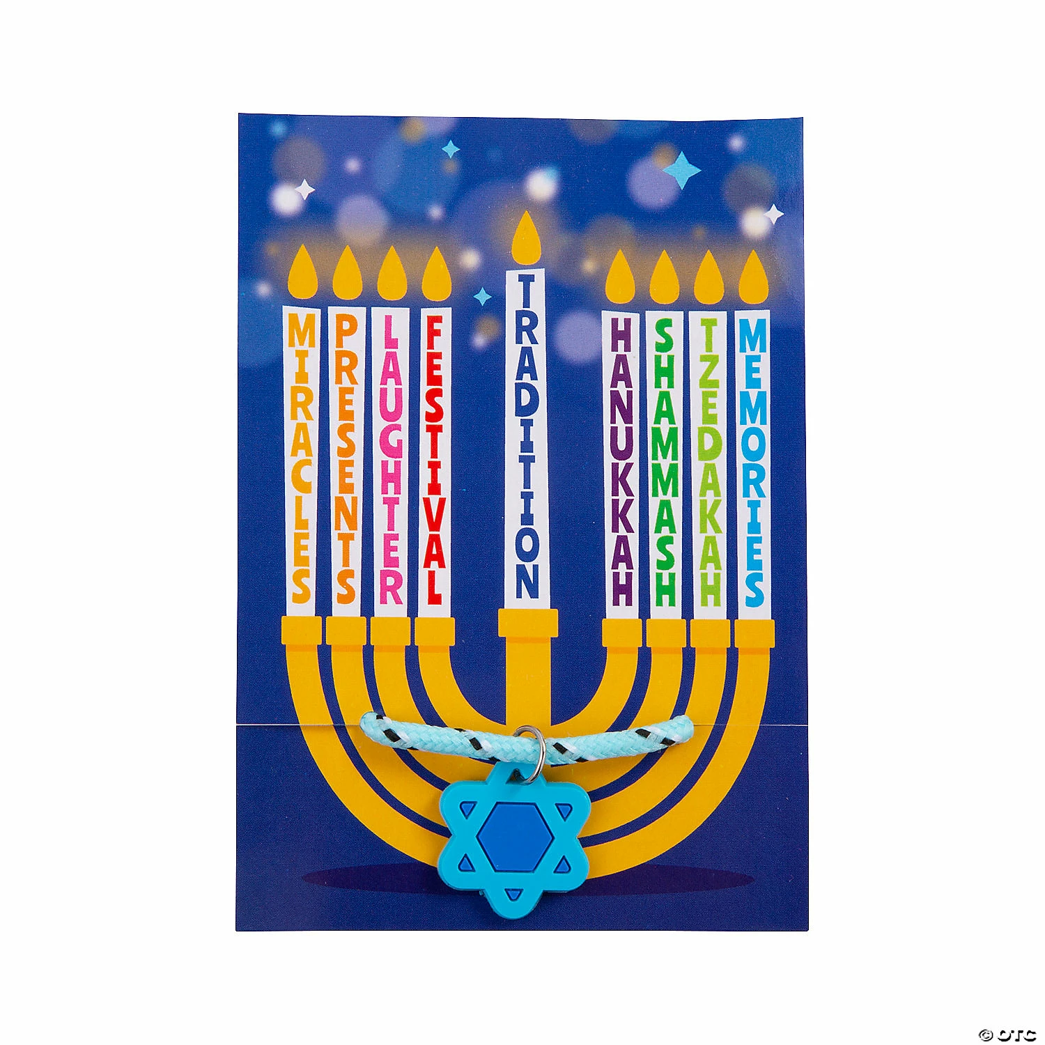 Celebrate the Festival of Lights with a charming party favor. Featuring a nylon bracelet with a silicone charm of the Star of David on a colorful cardstock card picturing a menorah with words on the candles, this small giveaway is perfect for Hanukkah celebrations. Nylon. Cardstock card, 3-1/2″ x 5″; bracelet, 13″ circ. with 1″ charm. Simple assembly required. © OTC