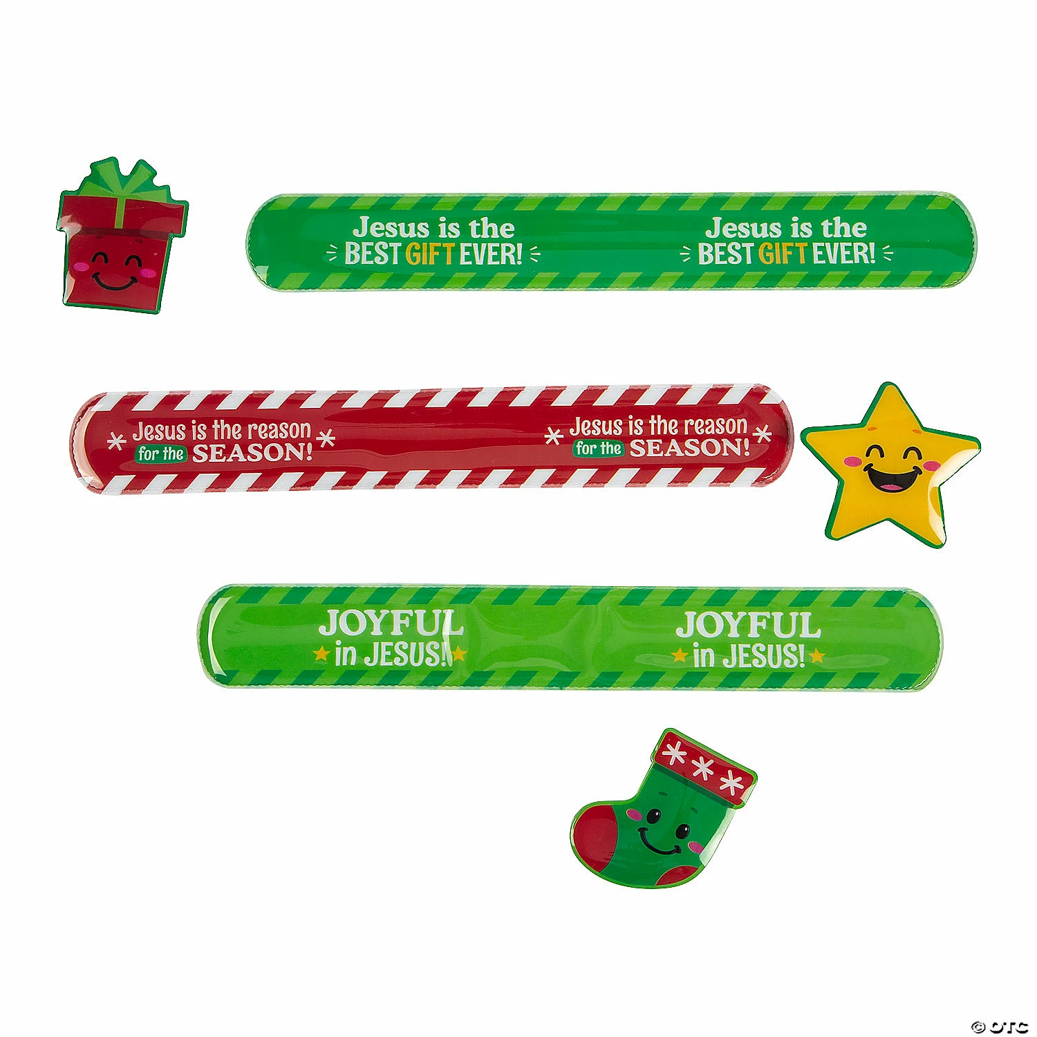 Help Sunday School kids keep their faith in perspective during the holiday season and to remember that Jesus is the reason for the season with these cute and colorful slap bracelets. Each Christmas slap bracelet has seasonal colors and a faith-filled message like “Jesus is the best gift ever!” or “Joyful in Jesus!”. These bracelets make great Christmas prizes for Sunday School. Metal. 8 3/4″ © OTC