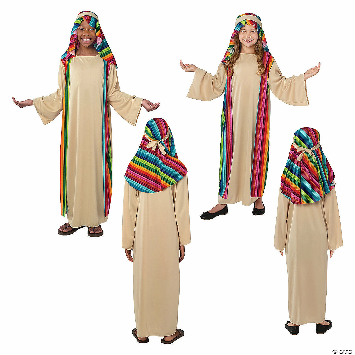 This child’s costume is perfect for acting out the Bible story of Joseph and his colorful robe! A great addition to your Sunday School supplies, this lightweight and durable religious costume would also work for a bystander or a colorful shepherd in a Nativity pageant. Add it to your church’s Christmas props and pageant costumes. Polyester. (2 pcs. per set) Imported.Includes:• Ankle-length tunic• Headpiece