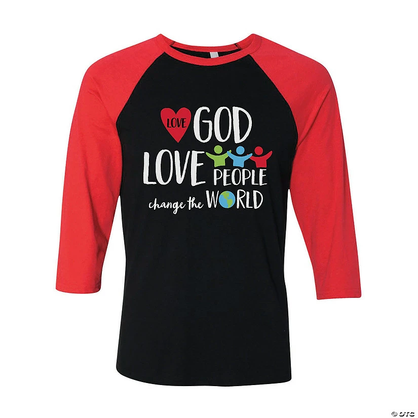 Believers who follow the teachings of Jesus know the importance of loving God with all their heart, soul, mind and strength while also loving their neighbor as themselves. Following these commandments can change the world! This comfortable religious shirt spreads a positive message of love and change for the better. Great as a gift or church group prize, this shirt will get noticed! © OTC• Brand: Bella+Canvas• Unisex sizing with side seams.• Three-quarter sleeve.• Contrast raglan sleeves and neck trim.• Solid colors are 52% combed and ring-spun cotton, 48% poly, 40 single 3.6 oz.• Need more? With our tees, we’ve got your back (and front)! To order in bulk for any size group, just call 1-877-513-0384. Or, give us a ring if you’d like to easily customize any of our pre-printed shirts with our free design service.