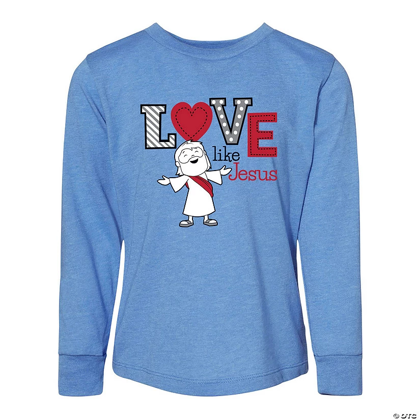 There’s nothing more adorable than a young child proclaiming their love for Jesus! This adorable long-sleeve t-shirt is sized for toddlers and features the message “love like Jesus” along with an image of a smiling Jesus character. A great gift for toddlers in a family of believers, these shirts are perfect for toddlers to wear during Sunday School music concerts or photos. © OTC• Brand: Bella+Canvas• Long sleeve• 100% Airlume combed, ring-spun cotton, 4.2 oz.• Unisex sizing• Pre-shrunk• Ribbed cuff• Side seamed• Tear away label• Need more? With our tees, we’ve got your back (and front)! To order in bulk for any size group, just call 1-877-513-0384. Or, give us a ring if you’d like to easily customize any of our pre-printed shirts with our free design service.