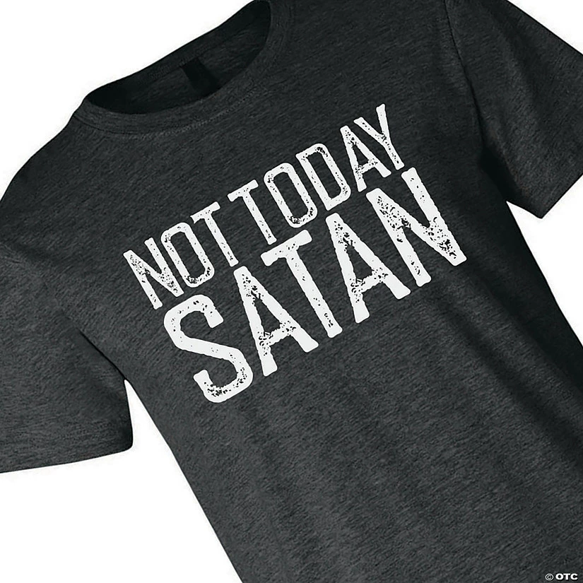“Not Today Satan.” Emblazoned with this famous quote, this graphic tee brings major sass! Wear your “Not Today Satan” shirt for a comfortable, everyday look. For a trendy t-shirt outfit, style the neutral heather grey tee with your favorite casual pieces like distressed jeans and boots. A unique take on a Christian t-shirt, the tee is also a fun look for a church event! © OTC• Bella + Canvas• Short sleeve• Unisex sizing with side seams• Cotton/poly blend• Comfortable “Tear Away” neck tag• Need more? With our tees, we’ve got your back (and front)! To order in bulk for any size group, just call 1-877-513-0384. Or, give us a ring if you’d like to easily customize any of our pre-printed shirts with our free design service.