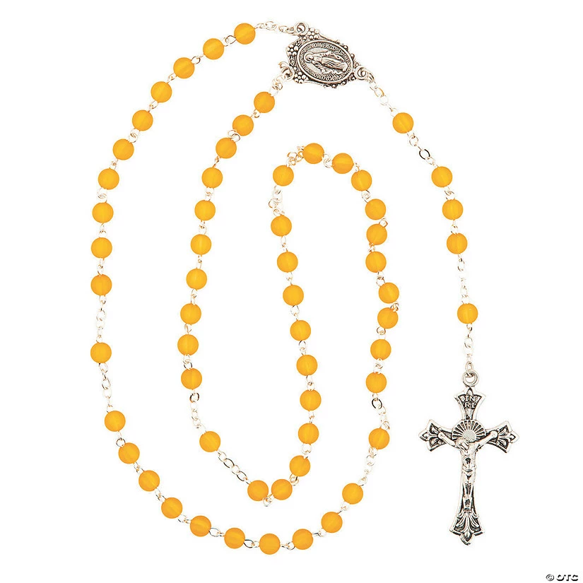Make a November birthday even more meaningful with this lovely topaz yellow rosary. A perfect religious gift for a baptism or First Communion, this rosary is sure to become a treasured keepsake for the recipient. Find more faith-based gifts and giveaways elsewhere on this website. Metal. 18 3/4″