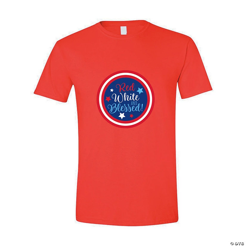 Red, white and blessed! Show your pride for the USA along with your thankfulness for blessings with this t-shirt. Perfect for wearing on a patriotic holiday like Independence Day, Veterans Day or any other holiday bursting with USA pride, this comfy shirt can also be worn just about any day of the year and makes a great gift! © OTC• Brand: Gildan• Short sleeve• High-density fabric• 100% ring spun cotton, 4.5 oz.• Tear away label• Double needle stitched neckline and sleeves• Need more? With our tees, we’ve got your back (and front)! To order in bulk for any size group, just call 1-877-513-0384. Or, give us a ring if you’d like to easily customize any of our pre-printed shirts with our free design service.