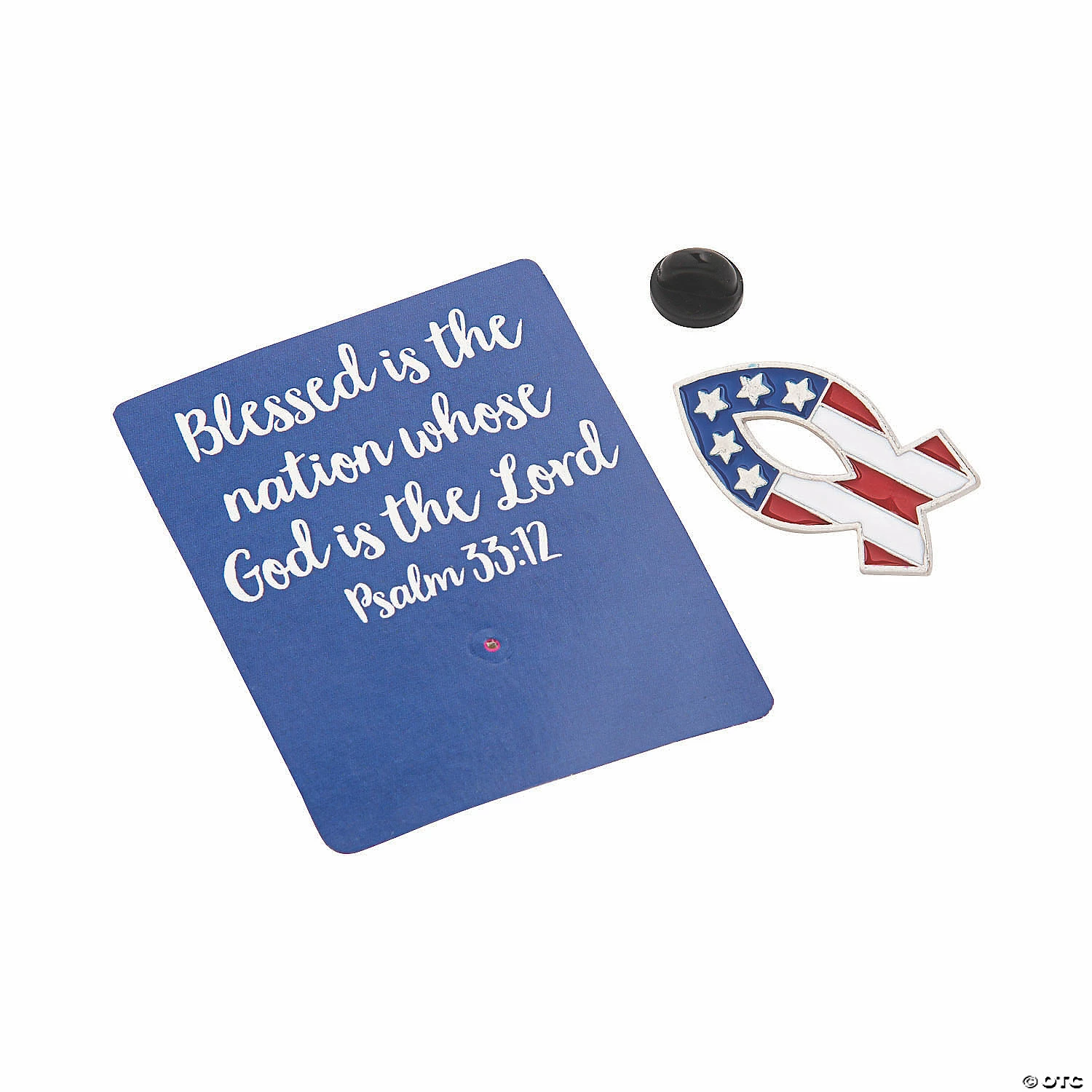 Religious Patriotic Fish Pins with Card – 12 Pc.