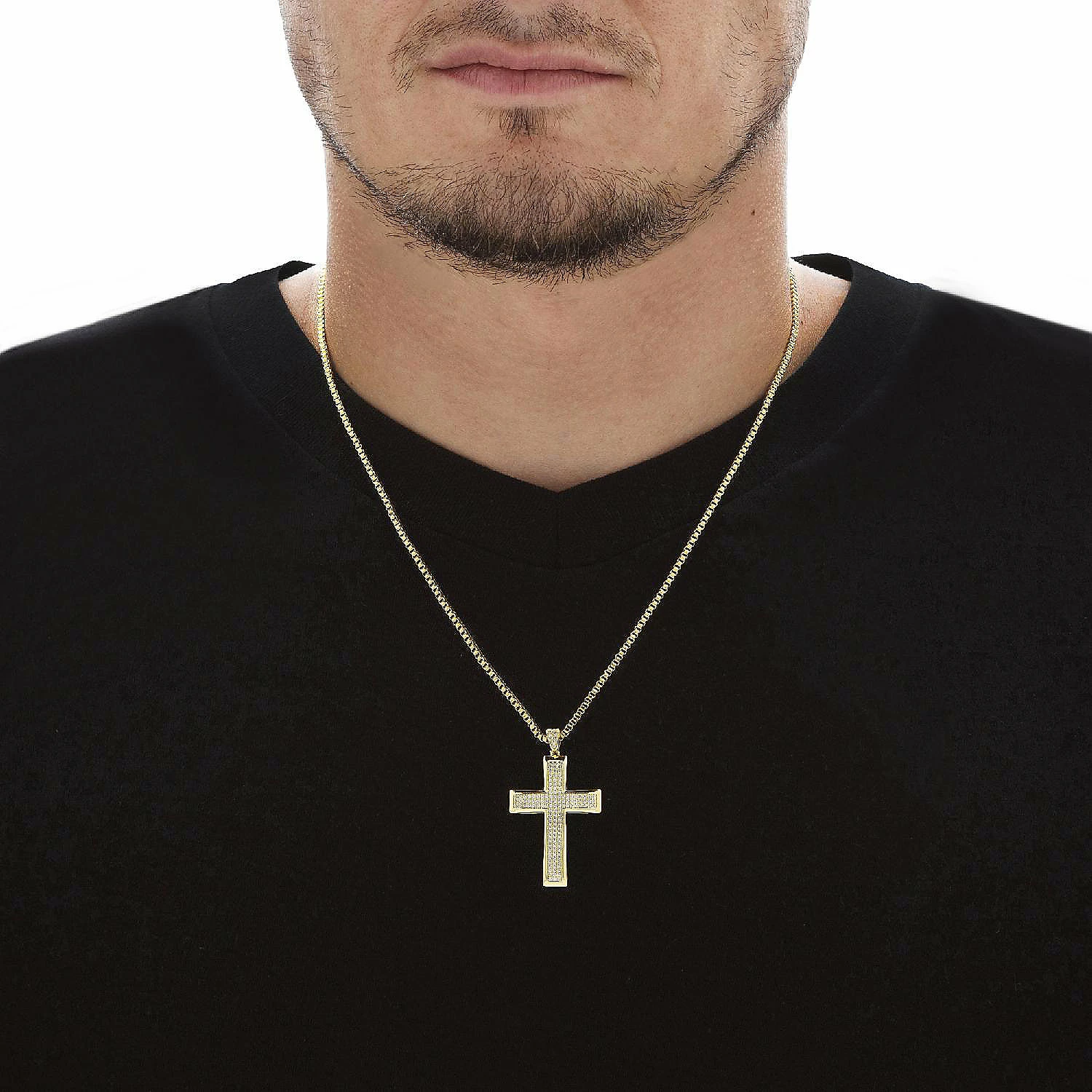 A beautiful expression of faith and a gorgeous style statement as well, this cross pendant is studded with shimmering cubic zirconia in a Gold-Plated setting. A 20″ box-link necklace chain is included. .65 carat T.W.